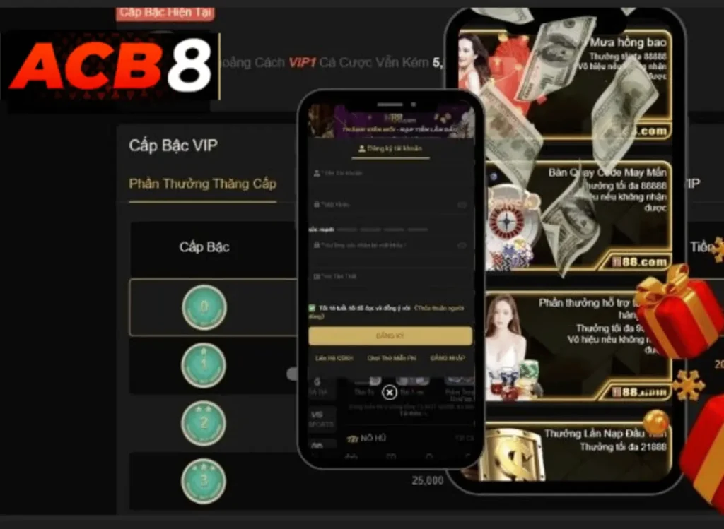 Acb8 không chỉ là sân chơi cá cược đỉnh cao mà còn là nơi dân chơi “săn” khuyến mãi khủng để tăng vốn. Nhà cái acb8 tung ra hàng loạt ưu đãi hấp dẫn: bonus chào mừng 100% cho lần nạp đầu, hoàn tiền lên đến 1% mỗi tuần, và thưởng nạp lại 20% vào cuối tuần. Các event đặc biệt như “Nạp 1 triệu, nhận thêm 500k xu” hay “Giải đấu slot” liên tục được tổ chức, giúp bạn bung xõa hết mình trên mọi trò, từ casino đến kèo thể thao.